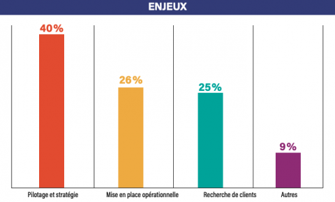 Quand il s’agit de développer leur business, les entreprises ont le choix et même l’embarras du choix. Mais, pour celles qui structurent leur stratégie, le potentiel est là. Ainsi, ce nouveau baromètre En mode éco s’intéresse au business. Pour Victor Gajan, cofondateur de Big Happy en charge de l’innovation, qui a mené l’étude, « le nombre de requêtes sur ce thème est très important, avec près de 3 000 recherches différentes de mots-clés. Mais nous voyons que les dirigeants organisent leurs demandes en ligne (Google et réseaux sociaux, NDLR) autour de trois enjeux : le pilotage et la stratégie en premier lieu, la mise en place opérationnelle et, enfin, la recherche brute de clients. »
