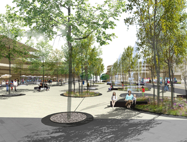 Une place centrale de 6 000 m2 (visuel ci-dessus) sera bordée de 3 000 m2 de commerces de proximité. Cofely (filiale de GDF Suez) réalisera une chaufferie bois (eau chaude et chauffage). Côté équipements publics, la Zac comprendra deux terrains de football, un dojo, une salle polyvalente (200 places) et une salle des fêtes (1 000 places).