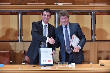 Le Premier ministre Manuel Valls et Damien Alary, président PS de la Région Languedoc-Roussillon, ont signé lundi soir à Montpellier le protocole d’accord du contrat de plan Etat-Région (CPER) 2015-2020, pour lequel l’Etat mobilisera 479,75 M€, soit 4 % de l’enveloppe nationale totale. La Région Languedoc-Roussillon abonde, de son côté, à hauteur de 564 M€. Avec 187 M€ de crédits européens fléchés à ce stade, le montant des crédits publics investis en Languedoc-Roussillon dans le cadre du CPER s’élèvera d’ici à 2020 à 1,2 Md€, a souligné Damien Alary.