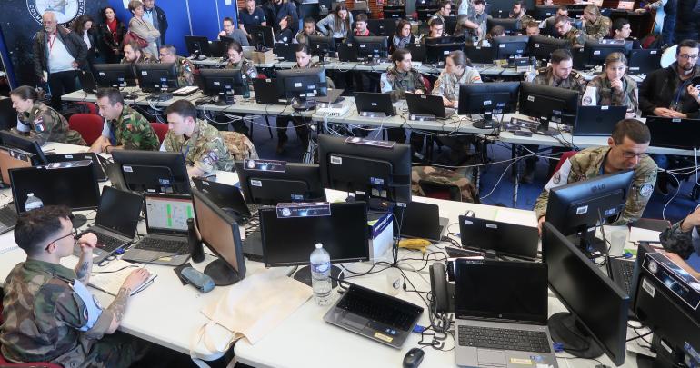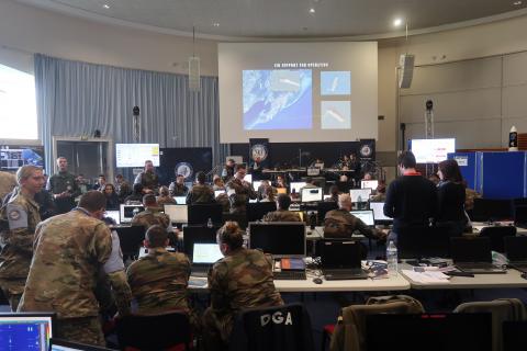 Aux côtés des spécialistes français du Commandement de l’Espace, on retrouve derrière les rangées d’ordinateurs des partenaires industriels et institutionnels (Cnes, Onera, Centre d’excellence spatial de l’Otan), mais aussi des représentants des forces armées étrangères (Allemagne, Espagne, Italie, Japon, États-Unis…), avec 27 joueurs étrangers au total. Objectif de cette ouverture internationale ? « Participer à la création d’une culture commune des opérations spatiales », indique Mathieu Bernabé, qui évoque des scénarios « denses mais réalistes » et voit dans cet exercice revendiqué comme étant « unique en Europe » un véritable « laboratoire ».