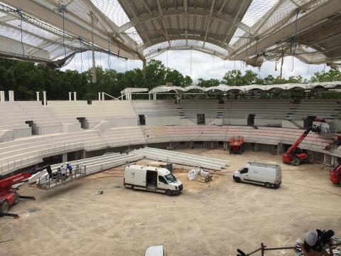 Un espace ouvert sur la ville et les Lunellois, entre ombre et lumière, grâce à une toiture en dentelle thermolaquée. C’est ainsi que Jacques Ferrier, architecte en charge du projet (agence Jacques Ferrier Architecture, Paris) avec l'agence CoO Architectes (Montpellier), décrit le nouvel espace des arènes de Lunel. Les travaux de réhabilitation, qui ont démarré en octobre 2016, touchent presque à leur fin. « L'inauguration aura lieu le 29 septembre », annonce Claude Arnaud, maire de Lunel, le 5 juin. Ce nouvel espace des arènes, de 12 mètres de hauteur (entre le sol et la toiture), pourra recevoir environ 4 000 spectateurs assis, contre environ 3 000 auparavant, sur ses deux rangées de gradins couvertes. Montant des travaux : 9,8 M€, dont 7 M€ financés par la Ville de Lunel.